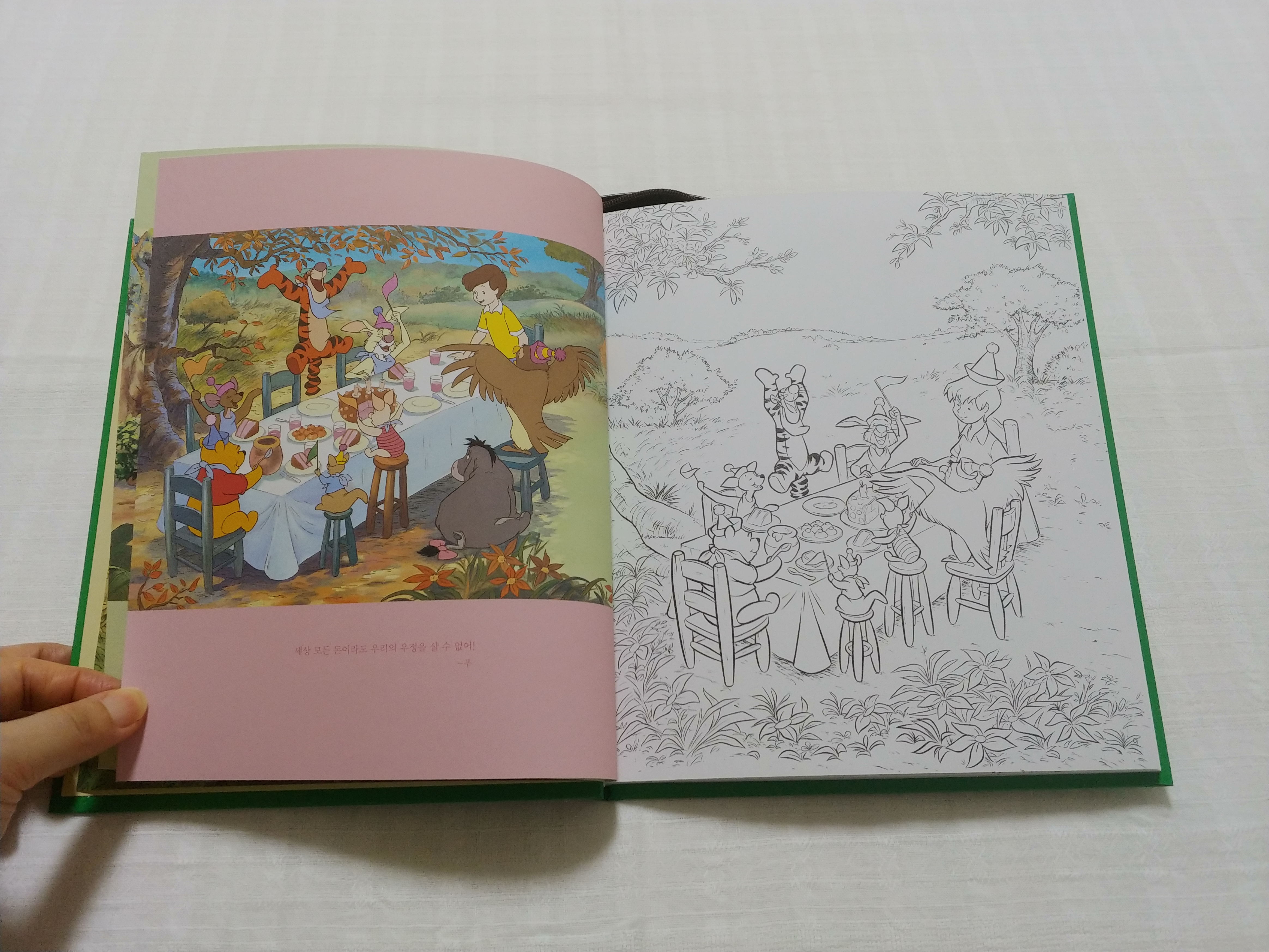 이제 본격적으로 푸의 일상과 친구들의 일상이 공개됩니다. 그림체가 너무 예뻐요. 색칠하는 데는 난이도가 있어서 시간이 꽤 소요될 거 같은데... 하는 마음이 ㅋㅋ 그래도 푸니까 너무 좋다는요^^