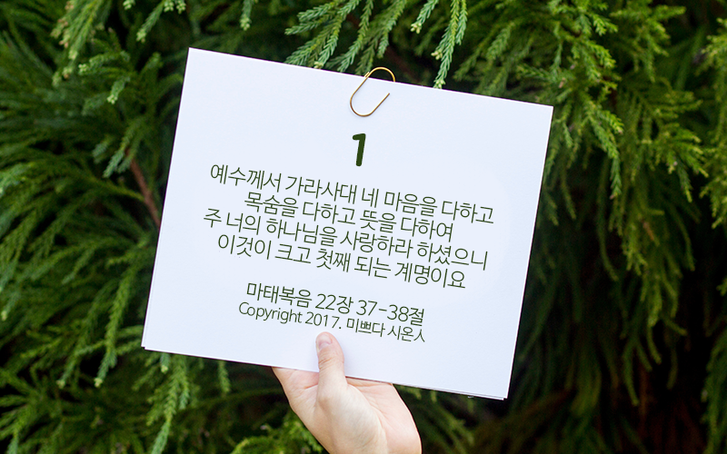 한 율법사가 예수님께 질문을 한다. 가장 큰 율법이 무엇이냐고. 율법사는 예수님께서 하실 말씀을 잘 알고 있었다. 그런 그의 방자한 마음을 아시는 예수님께서 가르침주신 가장 크고 첫째가 되는 계명은 '마음과 목숨과 뜻을 다하여 하나님을 사랑하라'는 내용이었다. 물론 신앙생활을 하는 데 있어 누구보다 하나님을 마음 다해 사랑해야 한다는 사실은 알고 있다. 그런데 예수님께서 주신 말씀만 보자면 마음을 다하는 방법이 무엇인지, 목숨을 다하고 뜻을 어디에 두고 있어야 하는지.. 어렵고 난해한 생각이 든다. 해답을 찾기 위해서는 성경을 찾아봐야 한다. 모든 답은 이미 성경 안에 있기 때문이다.